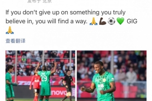 今日国安外援法比奥更新社媒,晒出比赛照并配文勉励自己:“那些你真正相信的东西,只要你不放弃,那总会找到路径。”