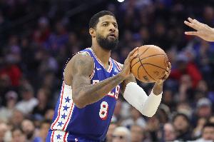 本场比赛,76人球星乔治表现还不错,打了33分半,投篮19中9,三分球9中3,罚球1中0,拿到21分5篮板2助攻1抢断,正负值+7。