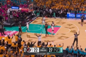 GIF-凯尔登压哨三分