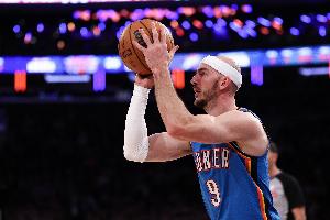 上半场,雷霆板凳球员表现不错,替补合计拿到26分,卡鲁索7分、麦凯恩7分、杰林·威廉姆斯6分、卡森·华莱士6分。