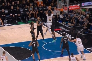 GIF-里德封盖卡梅隆·约翰逊扣篮犯规 森林狼挑战失败