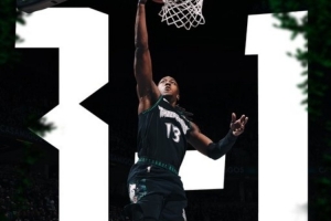 比赛结束后,森林狼官推制作了3比1领先这轮系列赛的海报,道苏姆登上封面。