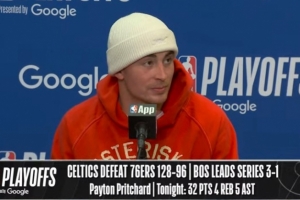 体育资讯4月27日讯 NBA季后赛首轮G4,凯尔特人客场128-96大胜76人,总比分3-1拿到赛点。赛后普里查德接受了媒体采访,以下为采访全文。